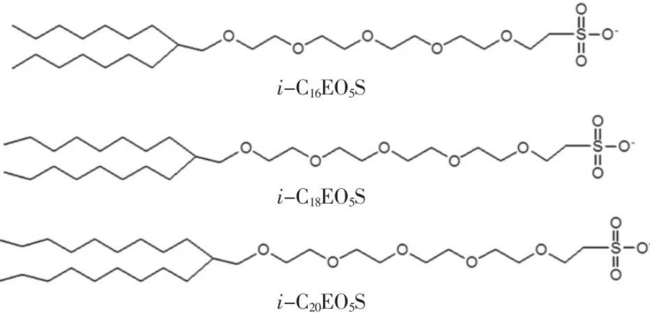 (1)本文研究的3種支鏈化脂肪醇聚氧乙烯醚磺酸鹽具有一定的降低界面張力活性,界面張力可達(dá)10-2mN/m數(shù)量級。