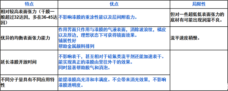 水性體系專用丙烯酸酯流平劑應(yīng)用特性