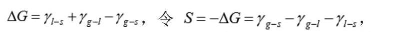 鋪展,是指在等溫、等壓的條件下,液固界面取代了氣固界面,然后產生了氣液界面,這樣一個物理過程。等溫、等壓條件下,可逆鋪展單位面積時,Gibbs自由能的變化值為
