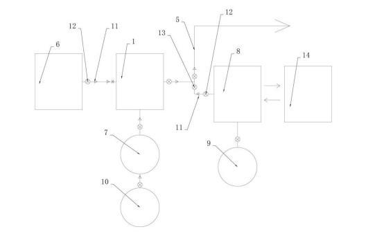 本發(fā)明的一種基于微納米氣泡的井口注氣裝置在使用時,微納米氣泡在油層流動過程中,可以改變油水界面張力,降低原油的粘度,增大油藏的滲透率,從而提高油水的相對滲透率,進而提高原油的采收率;而加藥泵能夠對注水井注入藥液,從而改善注水井管道、油氣田狀況,提高采油率;同時第二旋風分離器能夠將尺寸較大的微納米氣泡分離出去,從而保證注入井下的微納米氣泡的尺寸,進而確保驅油效果,提升采油率。