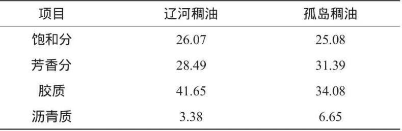 遼河和孤島兩種稠油組分的平均相對分子質(zhì)量和元素分析結(jié)果見表3、4。