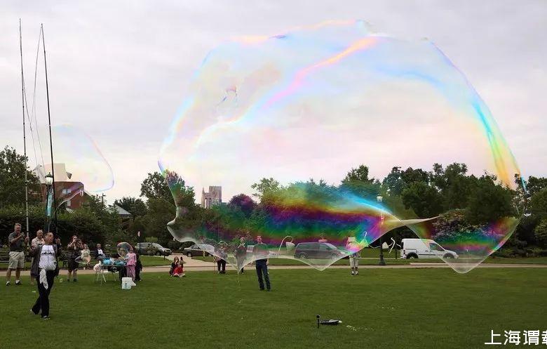 那么,世界上最大的肥皂泡到底有多大呢?目前的吉尼斯世界紀(jì)錄是GARY PEARLMAN在2015年創(chuàng)造的,他用巨大的蘸有泡泡溶液的線框成功制造出了一個(gè)體積約有96.27立方米的巨大泡泡: