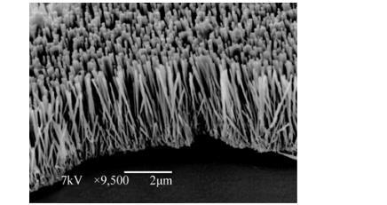 納米ZnO是一種重要的光催化材料,具有成本低廉、生物相容性較好和電子傳遞特性較高的優(yōu)點,因此在太陽能電池、傳感器、光電器件等方面都有廣泛應(yīng)用。本實驗采用水熱合成法定向生長ZnO納米線并用原子力顯微鏡(AFM)和掃描電鏡(SEM)對其進行了表征,結(jié)果如圖2和圖3所示。