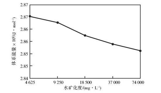 通過(guò)軟件計(jì)算不同礦化度下的體系能量見(jiàn)圖2。