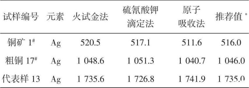 按試驗方法,用不同含量的銅物料樣品進行分析,并與其它測定銀元素方法的分析結(jié)果對照,結(jié)果見表4。