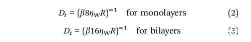 其中 ZW = 0.001 N sm? 2 是水的粘度,Zm 是 二維膜粘度,R是半徑 正在分析的域。 對于雙層,包括因子二 在分母中,因?yàn)樗嬖谟诜帜傅膬蓚?cè) 膜.54
