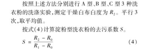 按式(4)計(jì)算淀粉型洗衣粉的去污系數(shù)S。