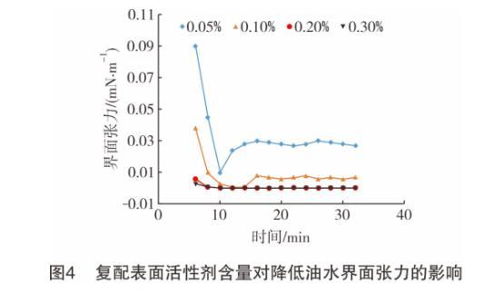 2.4復(fù)配表面活性劑含量對(duì)降低油水界面張力的影響
