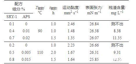 表6壓裂液破膠液基礎(chǔ)數(shù)據(jù)統(tǒng)計