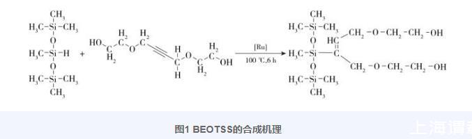 丁炔二醇乙氧基化物(BEO)分子結(jié)構(gòu)中含有炔基和兩個醇羥基,具有低泡和潤濕性好的優(yōu)點,在涂料工業(yè)中可配合三硅氧烷表面活性劑作為潤濕劑和流平劑。由于BEO分子中具有不飽和的炔基,可與七甲基三硅氧烷及含氫聚硅氧烷發(fā)生硅氫加成反應(yīng),合成具有兩條親水基團的有機硅表面活性劑。所得產(chǎn)物結(jié)合了有機硅表面活性劑和炔二醇表面活性劑的優(yōu)點,在消泡性、潤濕性、耐水解性方面更有優(yōu)勢,近年來逐漸受到研究者的關(guān)注。