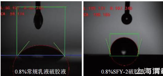 圖3 壓裂液破膠液處理煤巖后接觸角測(cè)試