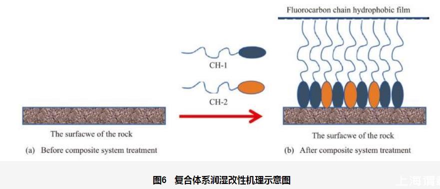 圖6復(fù)合體系潤濕改性機(jī)理示意圖