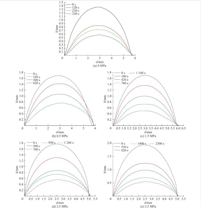 圖8不同時(shí)間及不同瓦斯壓力條件下的水滴輪廓