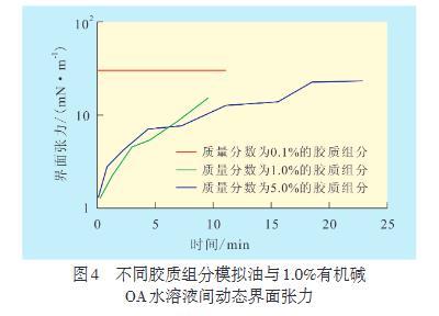 2.4有機堿OA水溶液與膠質組分模擬油間動態(tài)界面張力