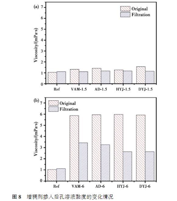 (2)原始溶液黏度相同的情況下,合成纖維素醚類增稠劑的表面張力較小,溶液受水泥礦相溶解產生的復雜離子環(huán)境影響較小,導致更小的砂漿孔溶液表面張力和黏度變化。