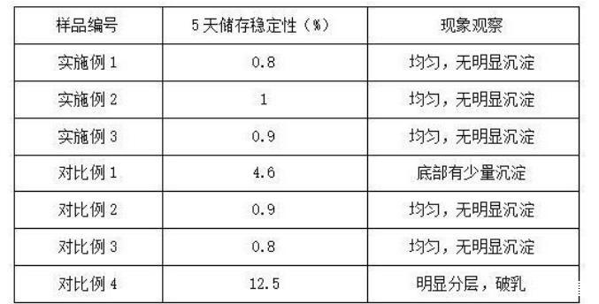 對(duì)比例1和實(shí)施例1的區(qū)別在于:將陽(yáng)離子表面活性劑替換為維生素E,其它和實(shí)施例1保持一致。