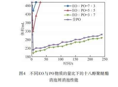 圖4不同EO與PO物質(zhì)的量比下的十八醇聚醚酯消泡劑消泡性能