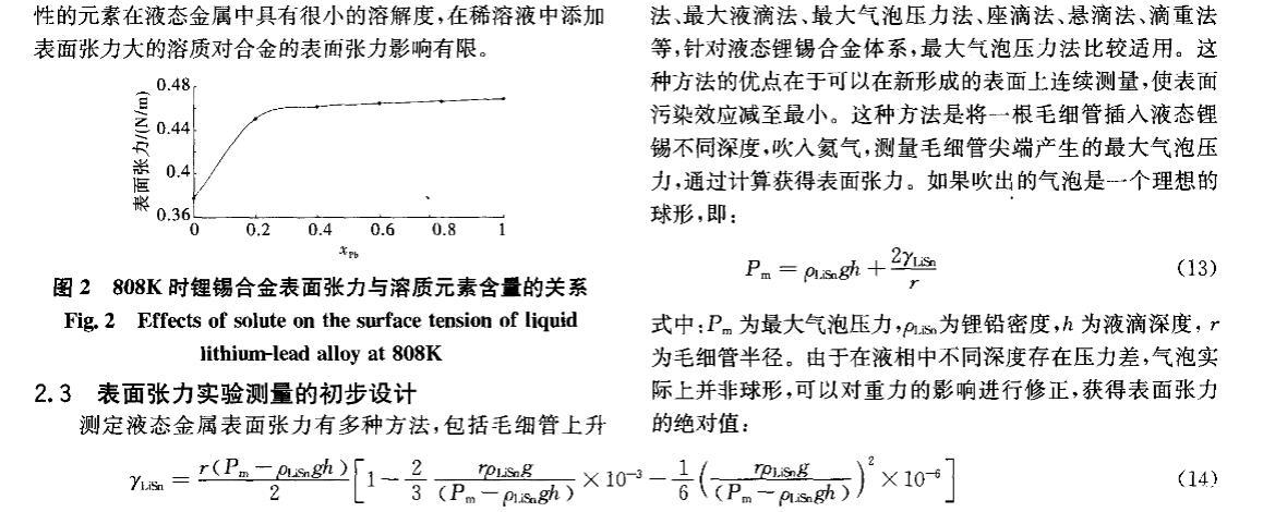 > 基于最大氣泡壓力方法測(cè)量液態(tài)鋰錫合金表面張力