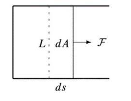 現(xiàn)在,將這個(gè)“活塞”向外拉出單位長度ds時(shí)改變表面積dA=L·ds,則所用的力F=dW/ds=α·L,那么單位長度的金屬絲受力就有F/L=α。也就是說,表面張力就等于表面能量密度。從單位來看,定義的表面張力的單位是F/m,表面能量密度α的單位是J/㎡,兩者也相等。