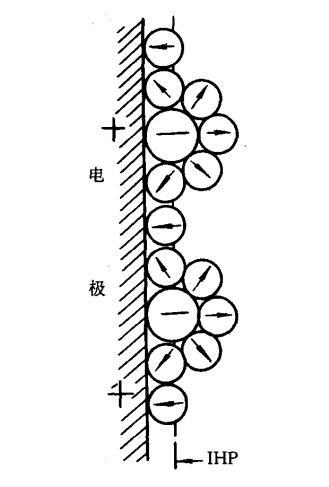 我們知道在溶液中電極表面是吸附了一層極性水分子的。就是緊密層第一層定向排列的水分子偶極層。所謂的表面活性物質(zhì)只有脫去其外部的水化膜,并且擠掉吸附在電極表面的水分子,才有可能與電極表面發(fā)生短程作用而聚集在界面,也就是成為表面活性物質(zhì)。比如在前面說(shuō)緊密層結(jié)構(gòu)時(shí)候的陰離子。