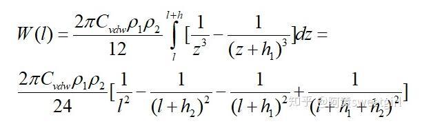 若取l為物質(zhì)本體內(nèi)分子間的距離d11,且兩半無限體為同一種物質(zhì)時,則上式的互作用勢變?yōu)椋ㄈ〗^對值