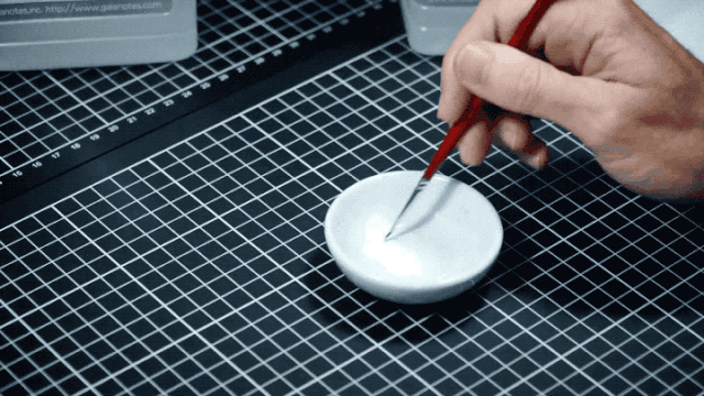 將幾滴油漆放到調(diào)色皿內(nèi),加少量稀料。