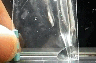 具有“橡皮膜”一般特性的肥皂水液膜。戳破一邊后,另一邊在表面張力的作用下迅速回縮。錄制者:Jubobroff