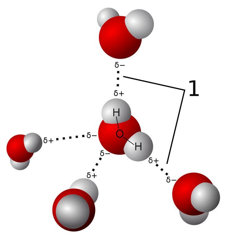 水由氫和氧原子組成。當氫(H)原子與氧(O)、氮(N)或氟(F)結(jié)合時,氫唯一的一個電子會與它們形成共價鍵,這時候氫原子的電子由于被O、N或F吸引而稍稍“跑偏”,導(dǎo)致氫原子這一端呈現(xiàn)更多的正電性(氫原子核帶正電);與之相對應(yīng)地,分子的另一端會因為吸引電子的能力更強而顯示出負電。分子對外顯示出比較強的電極性,分子與分子之間會因為電極性的不同而相互吸引。