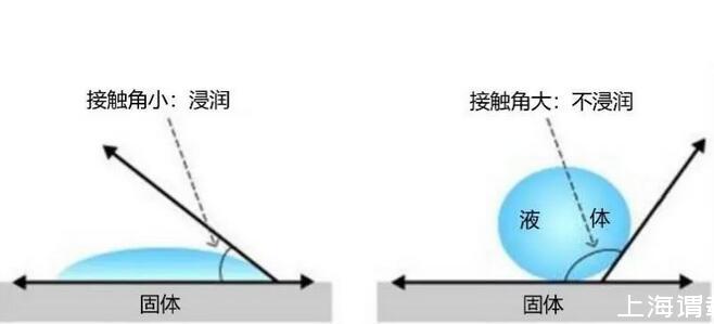 其實(shí),這種現(xiàn)象在物理學(xué)上叫浸潤(rùn)與不浸潤(rùn),由接觸角的大小來(lái)區(qū)分。
