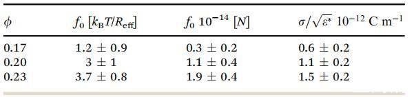 在模擬中,f0以kBT/Reff為單位,這是因為Reff是距離單位,kBT是能量單位。因此,在用物理單位表示f0時,必須考慮T和Reff的不確定性。然而,經過誤差分析,我們發(fā)現Df0僅由(Df0)Df的貢獻決定。