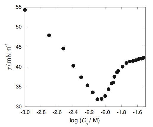 圖1無緩沖液時界面張力(γ)與總SLAS摩爾濃度(CS)對數(shù)的關系圖