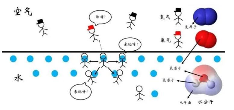 然而,這種關(guān)系的穩(wěn)定程度是與雙方分子的種類有關(guān)的。如圖4所示,對于水-空氣的界面而言,處于表面的水分子周圍的分子種類較為豐富,除了其他水分子,還有空氣中的氧氣、氮?dú)獾确肿印?