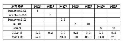 結(jié)合實驗1、實驗2的實驗可以明顯看出特種表活在除重油垢時的效果可以達到一個較普通常規(guī)表面活性劑更優(yōu)異的效果,尤其是在常溫、常壓、低濃度清洗時,作用尤為明顯。在金屬清潔劑、金屬表面處理劑的實際應(yīng)用中上述的多種特種表活可以直接應(yīng)用于替代常規(guī)的NP類、AEO類表面活性劑,進行使用。
