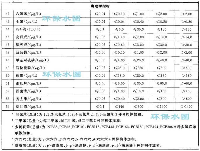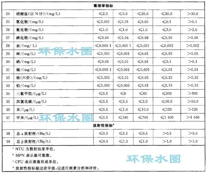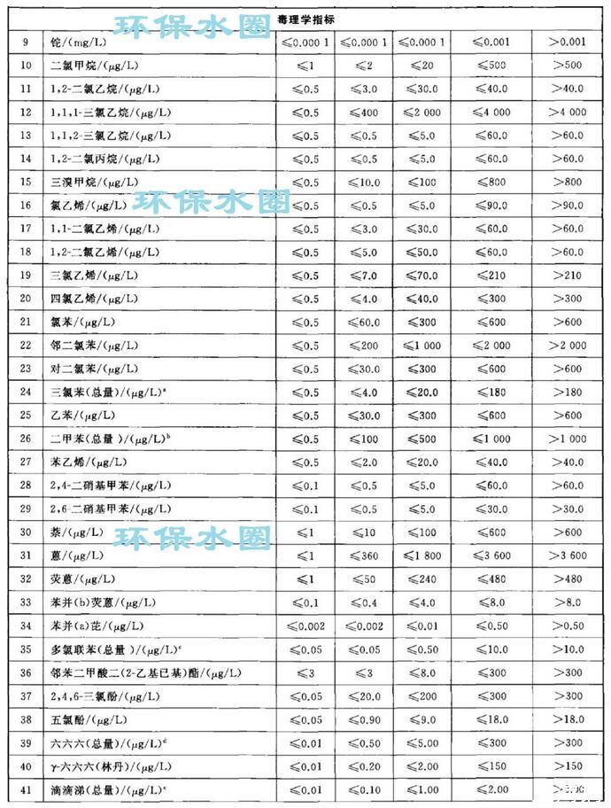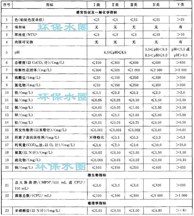 依據(jù)我國地下水質(zhì)量狀況和人體健康風(fēng)險(xiǎn),參照生活飲用水、工業(yè)、農(nóng)業(yè)等用水質(zhì)量要求,依據(jù)各組分含量高低(pH除外),分為五類。