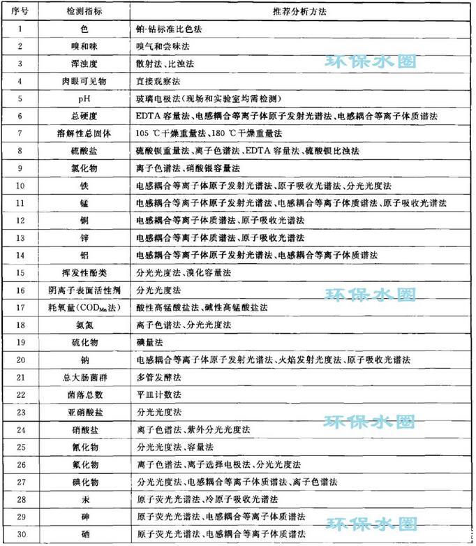 地下水質(zhì)量檢測指標(biāo)推薦分析方法