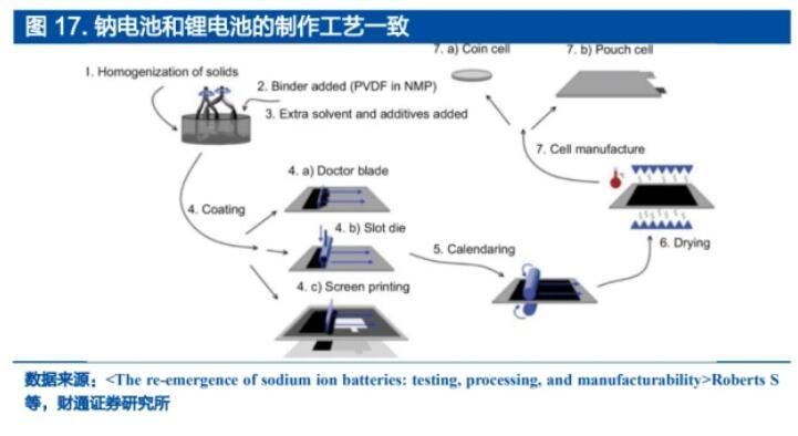 鈉離子電池的設(shè)備可以采用鋰離子電池的生產(chǎn)設(shè)備。鋰離子電池的生產(chǎn)設(shè)備主要分為針對(duì)電極制片工序的前端設(shè)備、覆蓋電芯裝配工序的中端設(shè)備和覆蓋電芯激活化成、分容檢測(cè)以及組裝成電池組等工藝的后端設(shè)備。鈉離子電池的制造工藝和設(shè)備與鋰電池兼容,只需要對(duì)設(shè)備進(jìn)行升級(jí)即可用于鈉電池生產(chǎn),需要投入的設(shè)備成本較低。