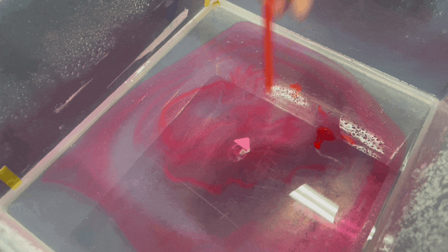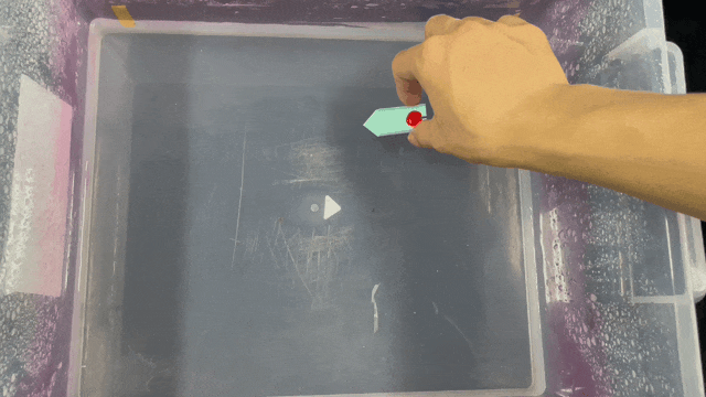 將油墨滴在小船的尾部,讓油墨一會(huì)兒能夠接觸到水面。