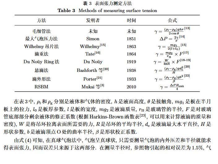 設(shè)計(jì)了一個(gè)新的表面張力測定裝置,通過實(shí)時(shí)測定液膜氣泡的半徑及其內(nèi)外壓差來獲得被測液體的表面張力。該測定液體表面張力的方法簡稱為真球氣泡法(real sphere bubblemethod,RSBM)。對十二烷基硫酸鈉(sodium dodecyl sulfate,SDS)溶液的表面張力進(jìn)行了測定,結(jié)果與文獻(xiàn)值吻合,且測定裝置的絕對精度為98.2。通過檢測到的液膜氣泡突然長大所需要的最大壓差值及其表面積隨時(shí)間的變化過程,定量分析溶液起泡難易程度及氣泡大小的關(guān)系。