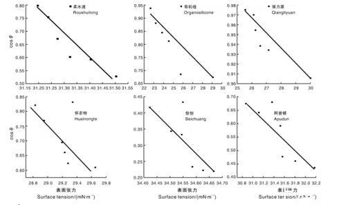 圖3苦參堿表面張力與接觸角的關(guān)系
