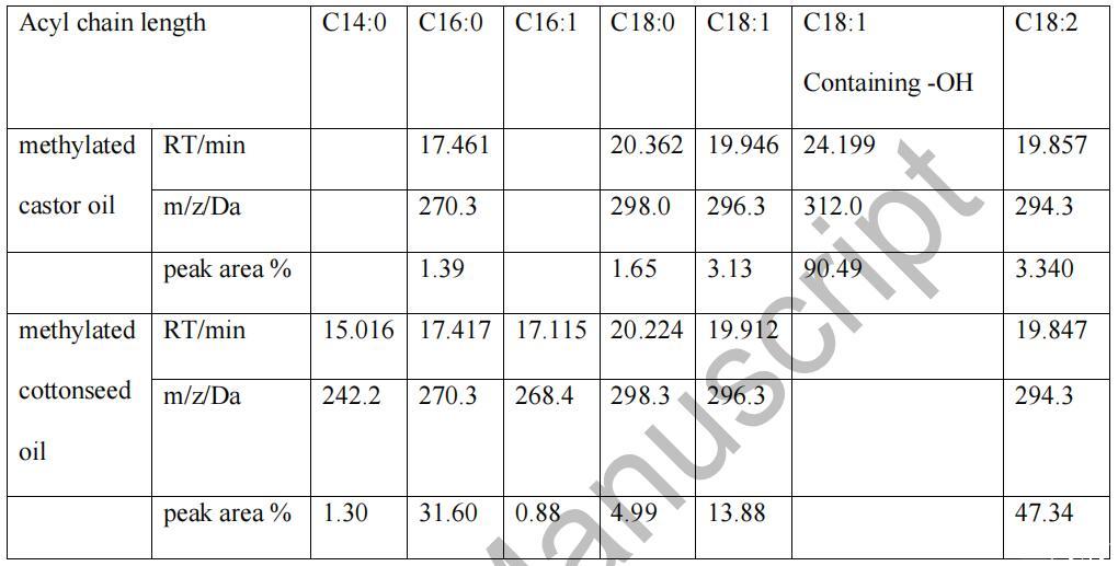 2.1 蓖麻油和棉籽油成分分析