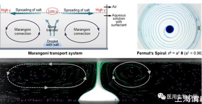 馬蘭戈尼效應驅動液體鋪展及其生成圖案,以及液面下方溶液中的馬蘭戈尼對流