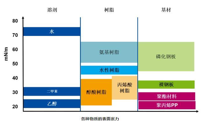 為什么現(xiàn)在的涂料工程師嘴里一直講降低表面張力了?那是因?yàn)?,隨著水性漆的不斷發(fā)展,很多企業(yè)都在油改水,由油性漆改換水性漆,而原來的油性漆中各種溶劑的表面張力都集中在20-40之間,唯獨(dú)水的表面張力系數(shù)72.8mN/m(20℃)。下面一起了解下表面張力在涂料中的應(yīng)用。